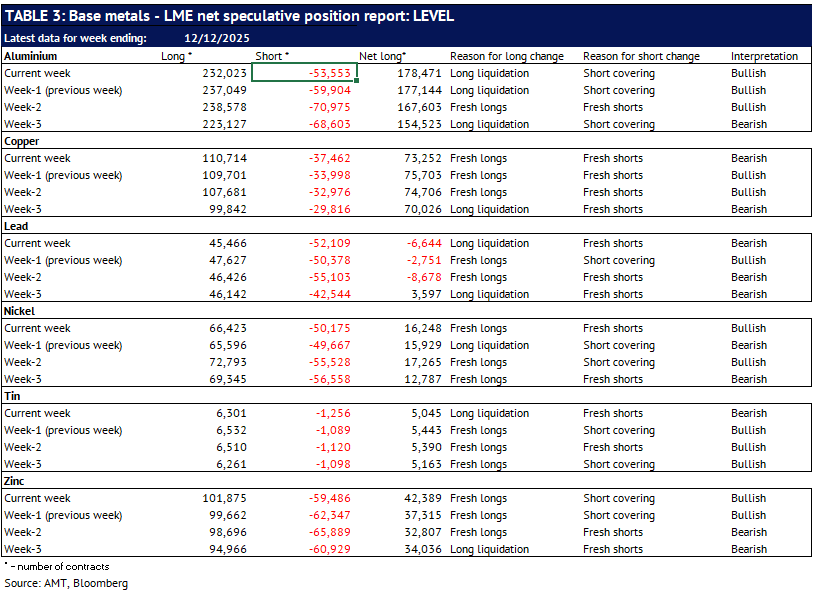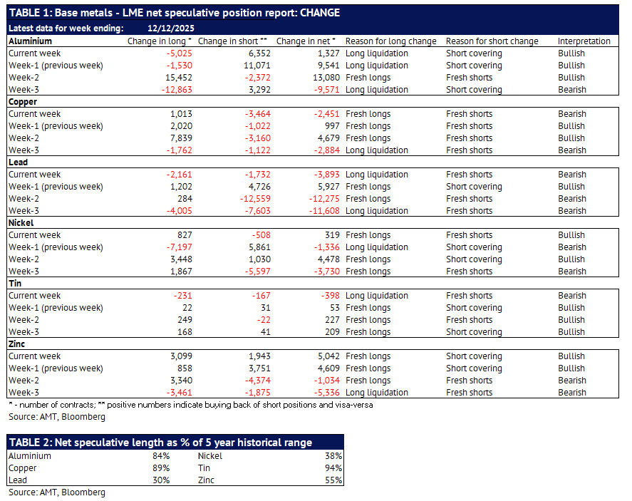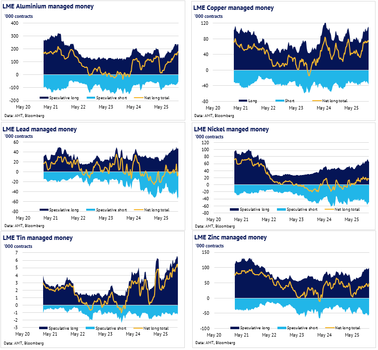 Definition: the data in this report show LME non-risk reducing positions (ie speculative positions) held by Investment Funds and Other Financial Institution