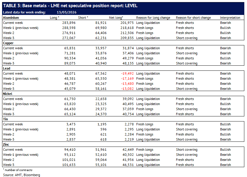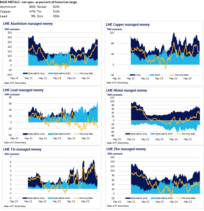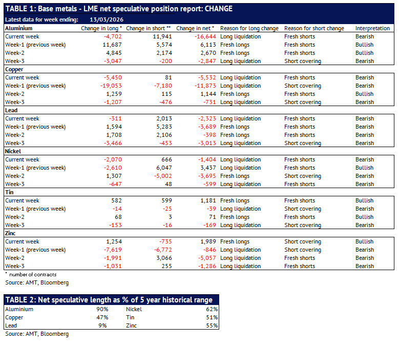 Definition: the data in this report show LME non-risk reducing positions (ie speculative positions) held by Investment Funds and Other Financial Institution