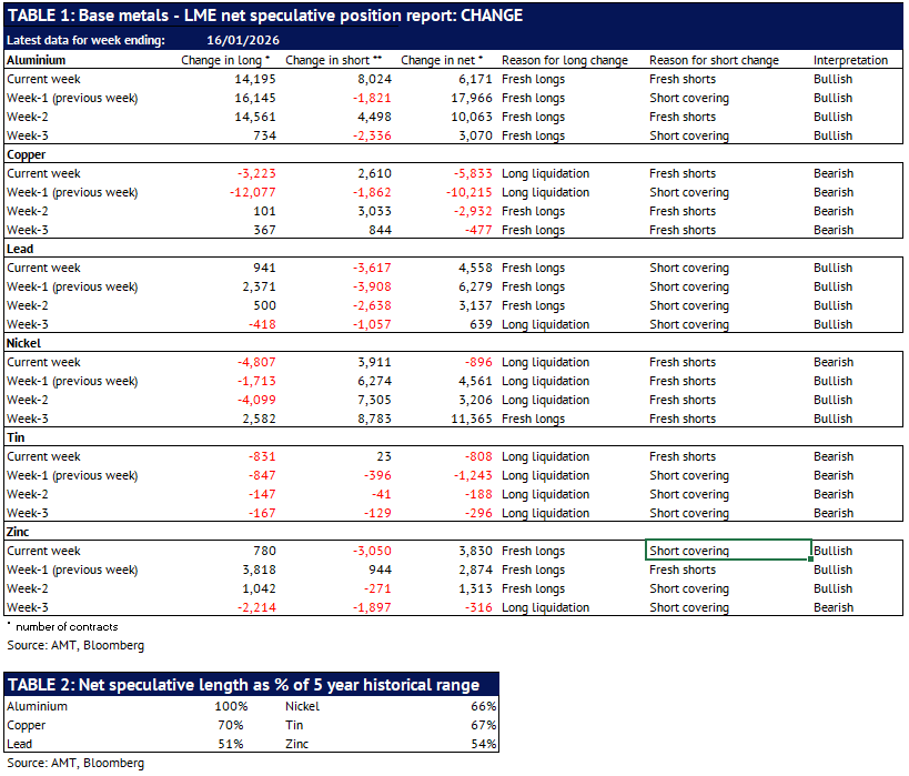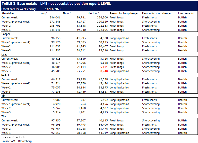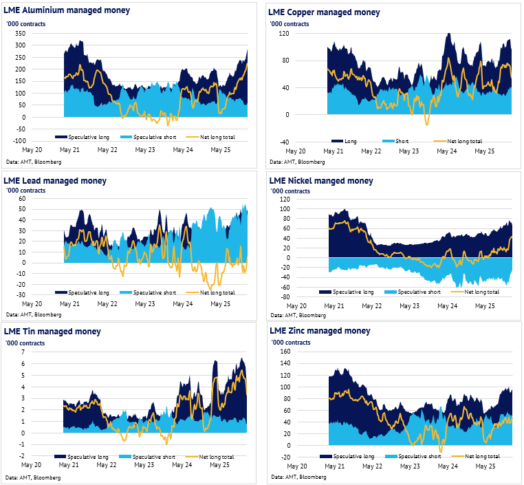 Definition: the data in this report show LME non-risk reducing positions (ie speculative positions) held by Investment Funds and Other Financial Institution