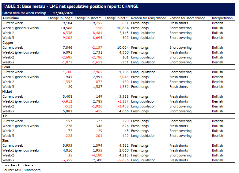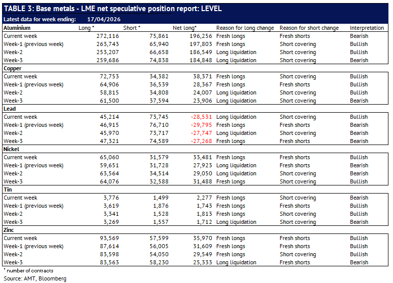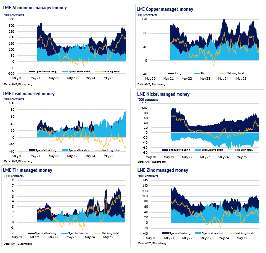 Definition: the data in this report show LME non-risk reducing positions (ie speculative positions) held by Investment Funds and Other Financial Institution