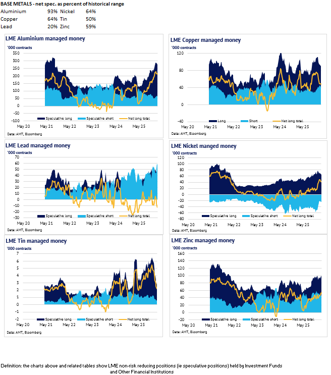 Definition: the data in this report show LME non-risk reducing positions (ie speculative positions) held by Investment Funds and Other Financial Institution
