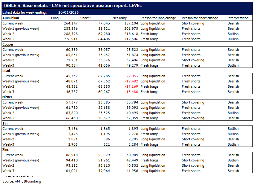 Definition: the data in this report show LME non-risk reducing positions (ie speculative positions) held by Investment Funds and Other Financial Institution