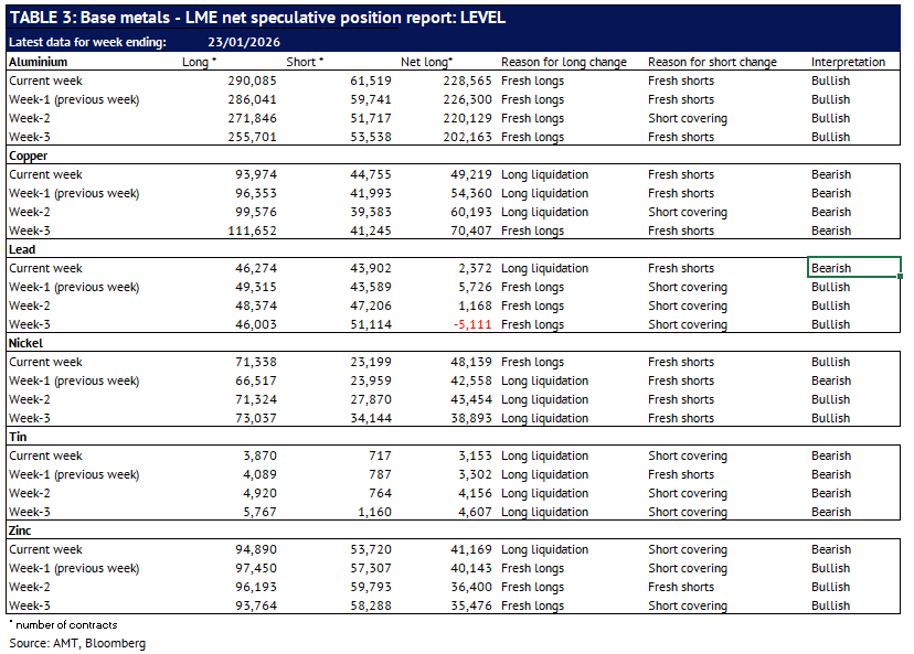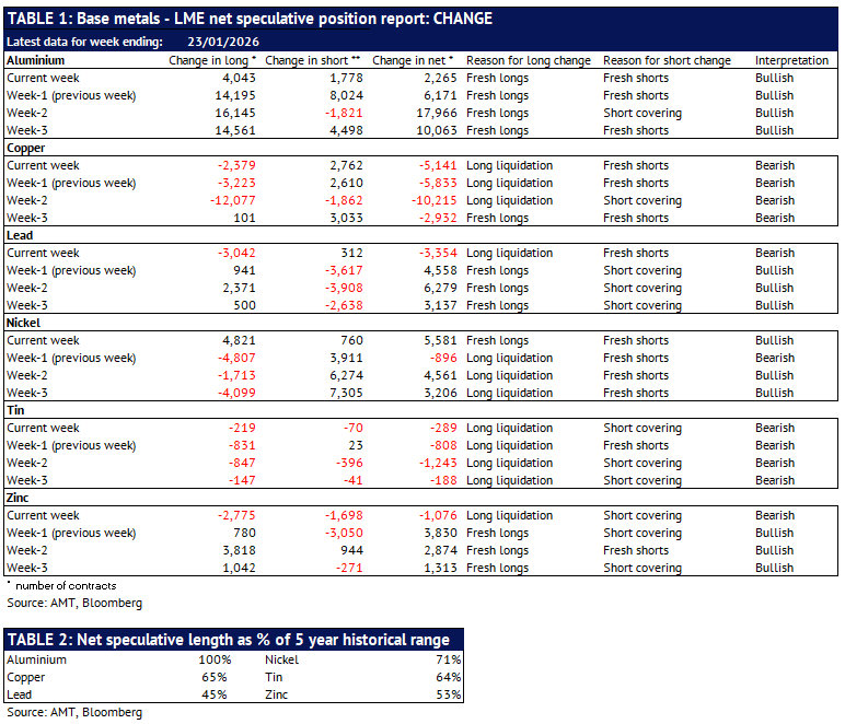 Definition: the data in this report show LME non-risk reducing positions (ie speculative positions) held by Investment Funds and Other Financial Institution