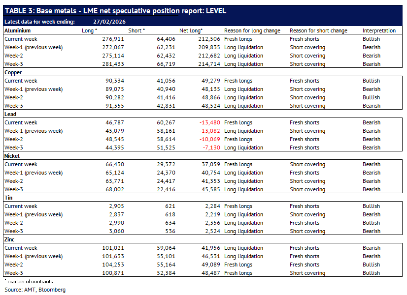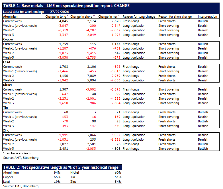Definition: the data in this report show LME non-risk reducing positions (ie speculative positions) held by Investment Funds and Other Financial Institution