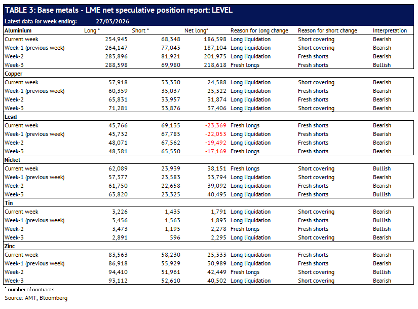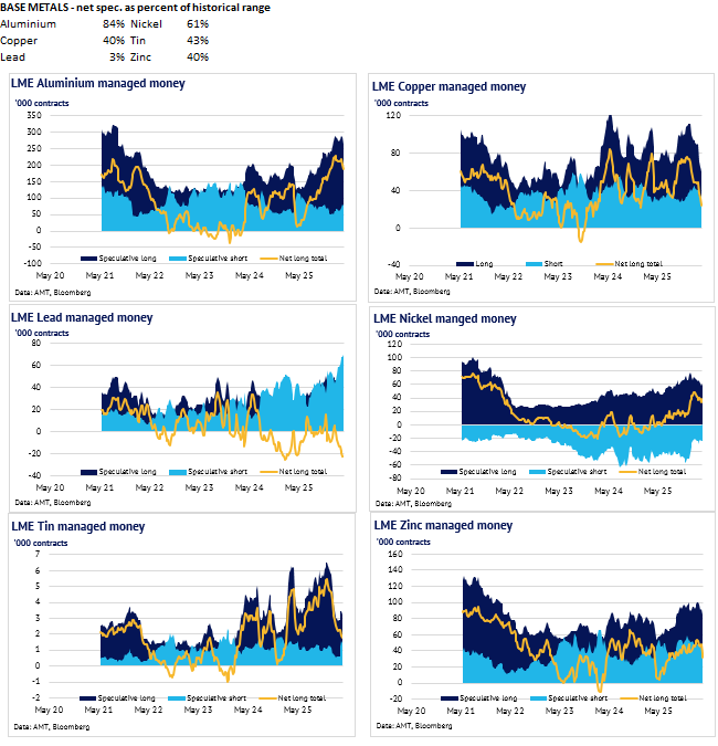 Definition: the data in this report show LME non-risk reducing positions (ie speculative positions) held by Investment Funds and Other Financial Institution