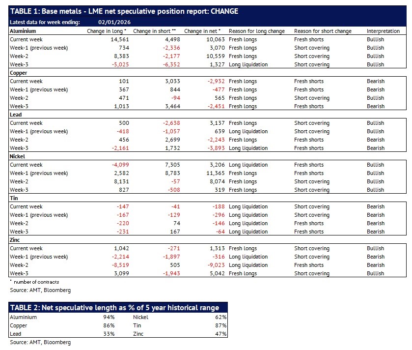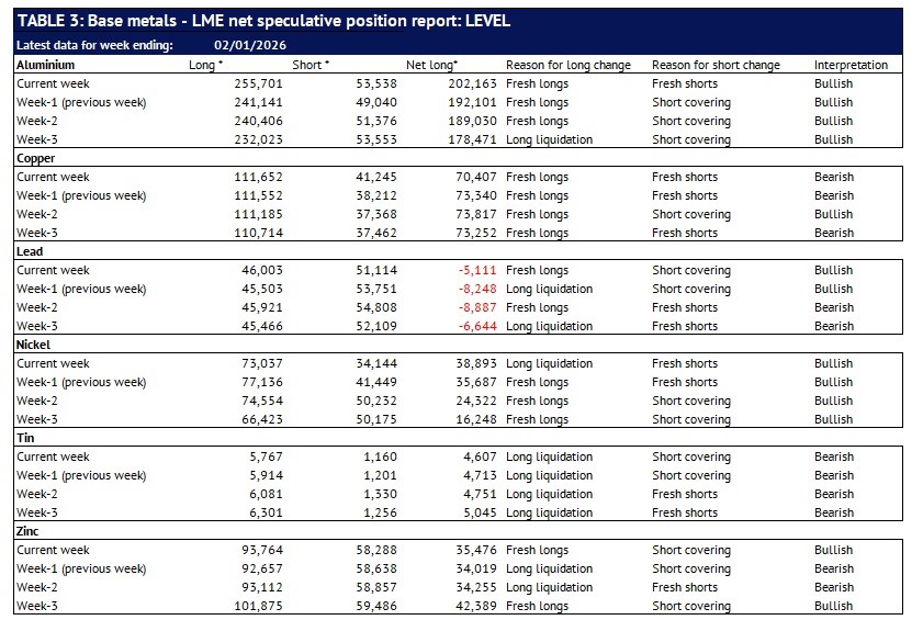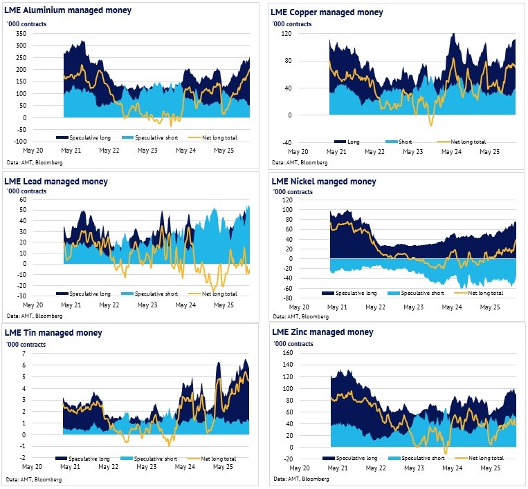 Definition: the data in this report show LME non-risk reducing positions (ie speculative positions) held by Investment Funds and Other Financial Institution