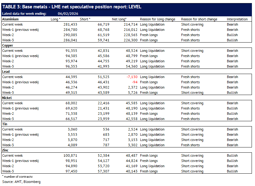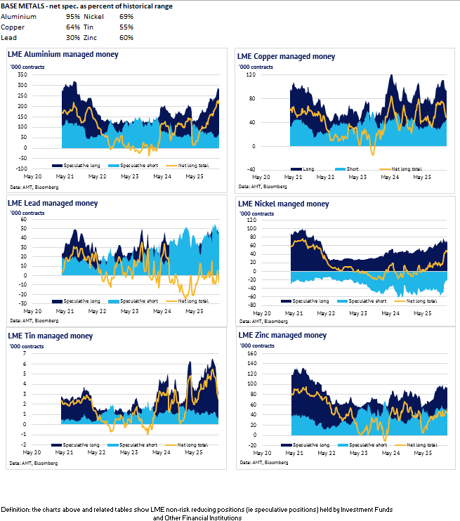 Definition: the data in this report show LME non-risk reducing positions (ie speculative positions) held by Investment Funds and Other Financial Institution