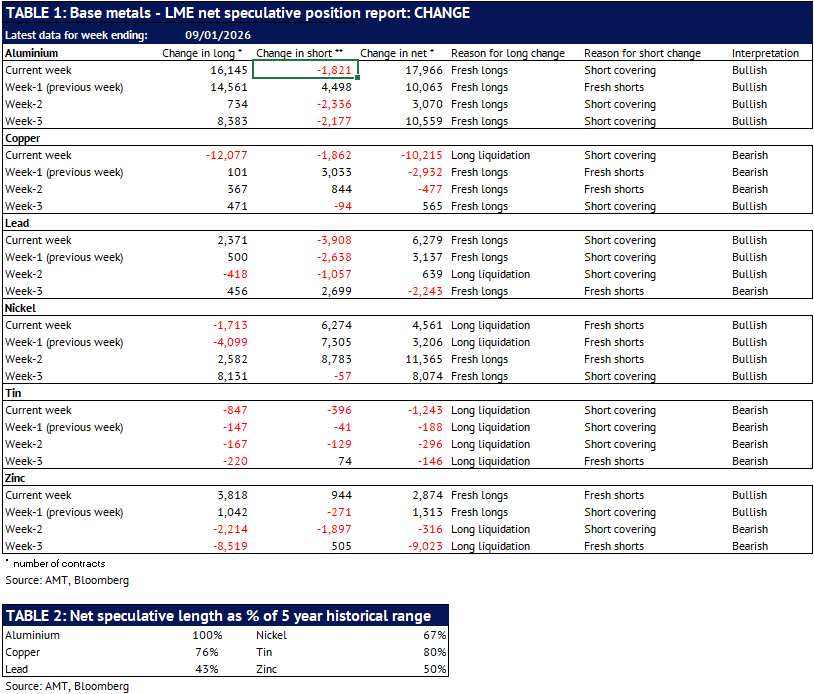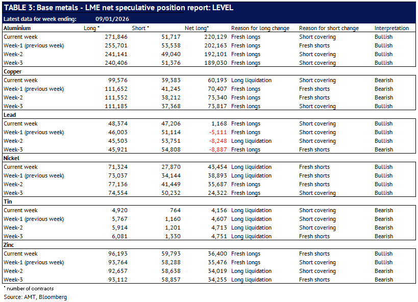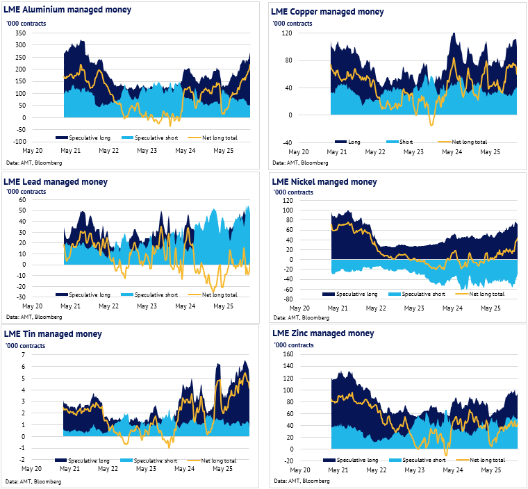 Definition: the data in this report show LME non-risk reducing positions (ie speculative positions) held by Investment Funds and Other Financial Institution